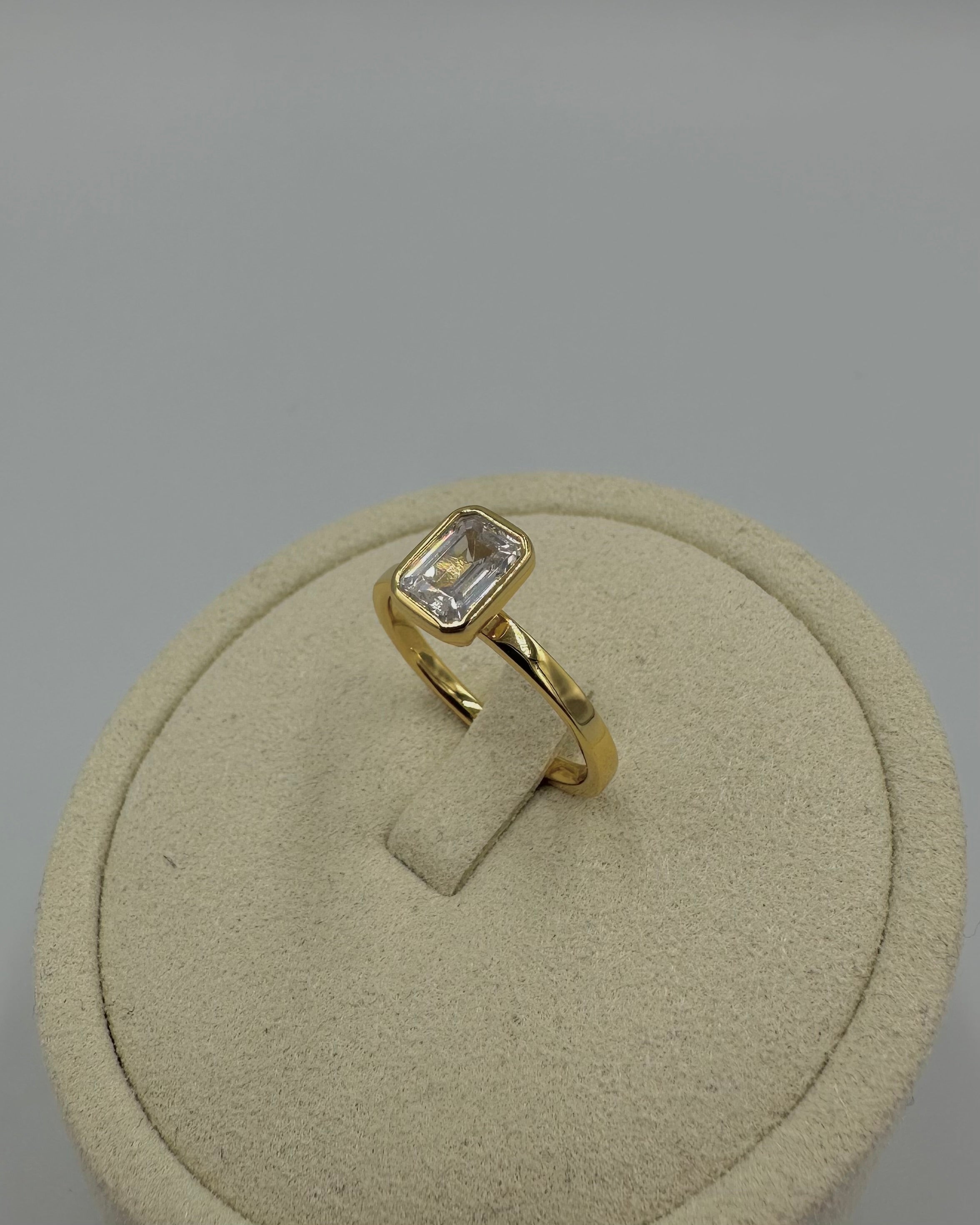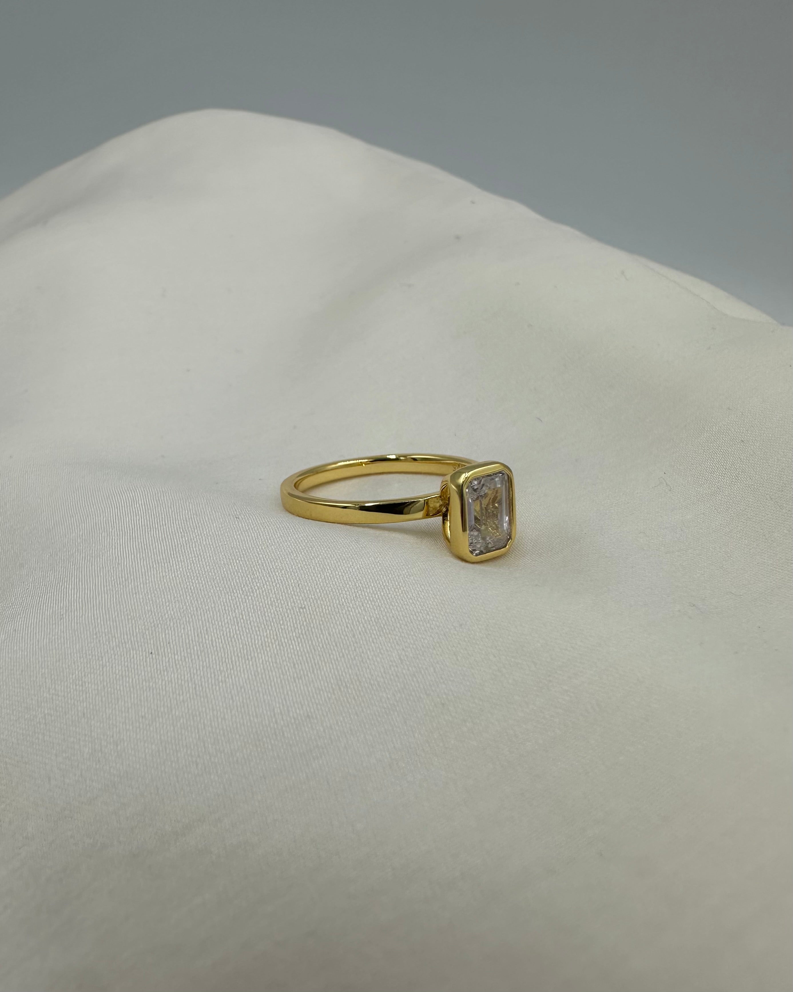 טבעת מרשימה בציפוי זהב קלאסי, בעיצוב אלגנטי ונקי שמקרין יוקרה ואופנתיות. במרכזה משובצת אבן זירקון מלבנית בעלת נוכחות, כדי להוסיף ברק עדין וליצור מראה מרהיב ומלוטש. איזון מושלם בין תחכום לפשטות שמתאימה לכולן, בין אם לאירועים חגיגיים או לשדרוג ההופעה היום-יומית, במחיר נגיש המאפשר ליהנות מיופי ואיכות מבלי להתפשר