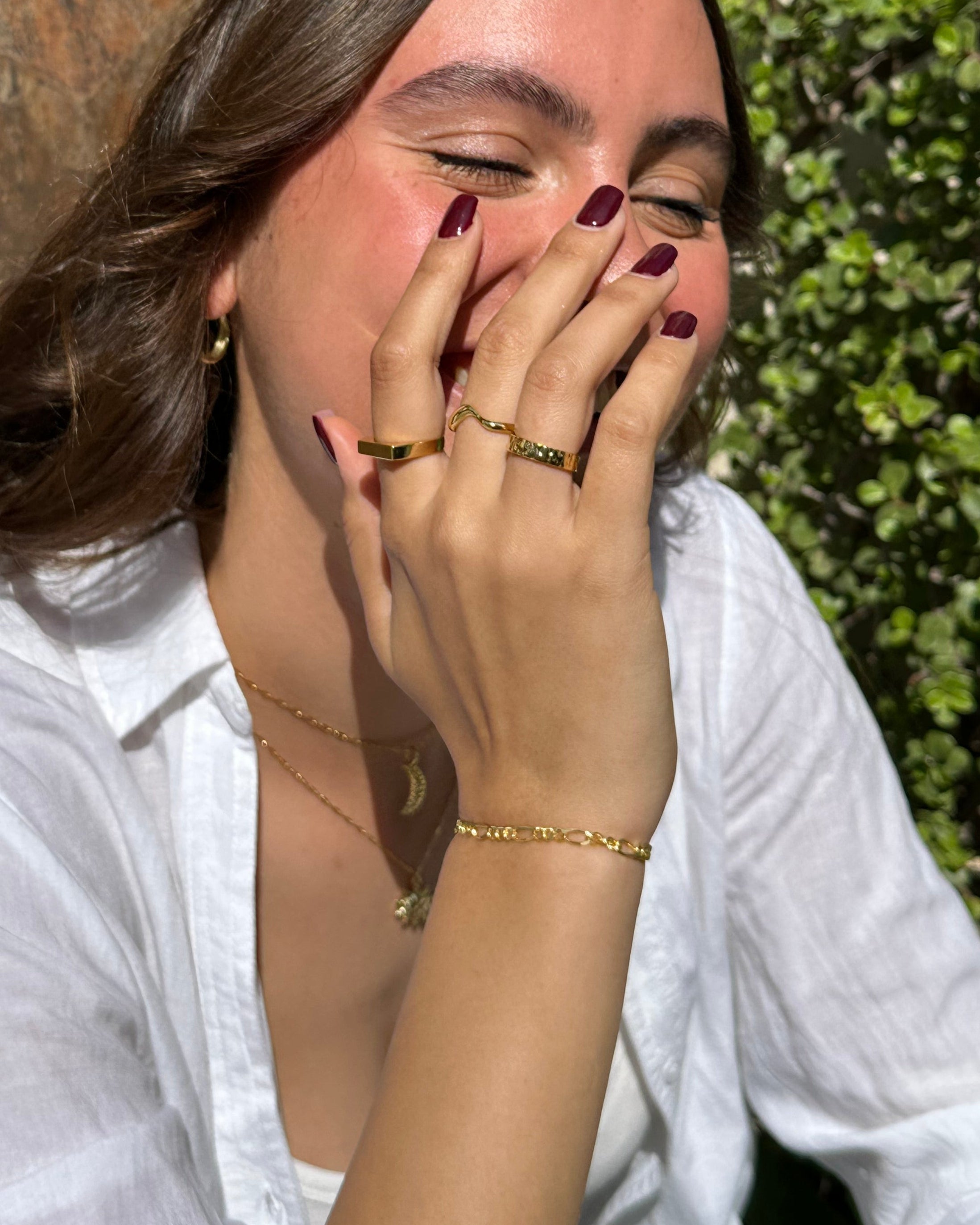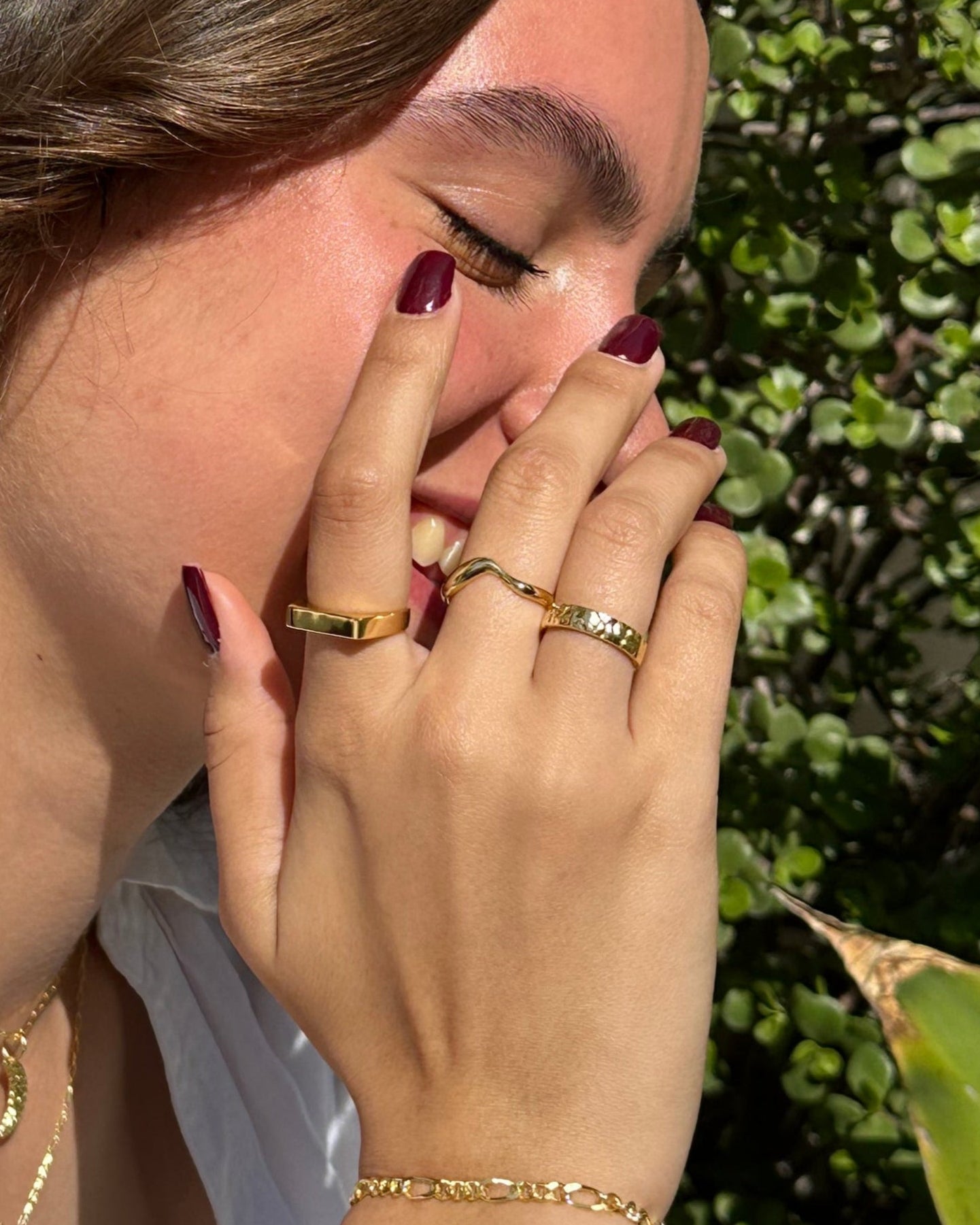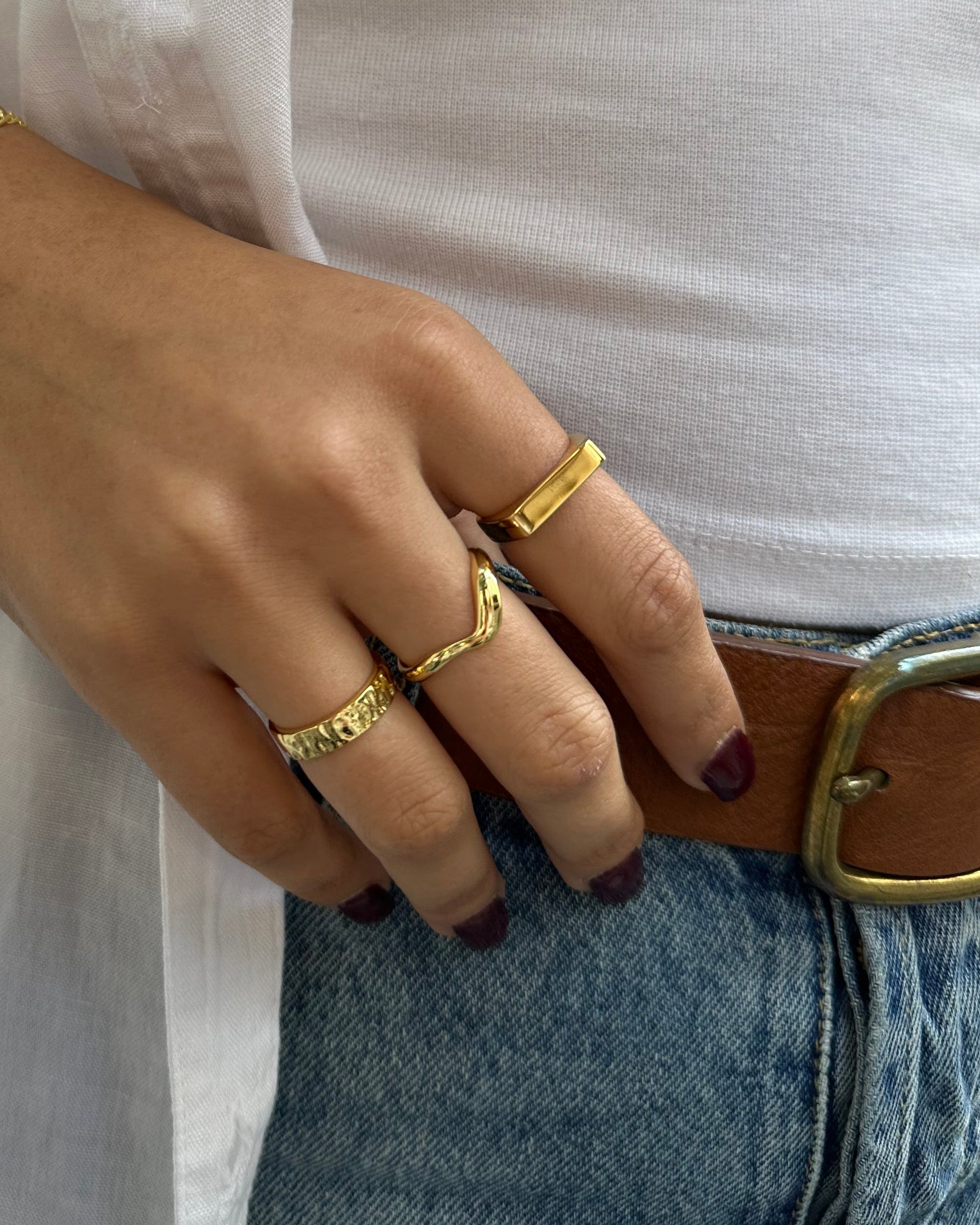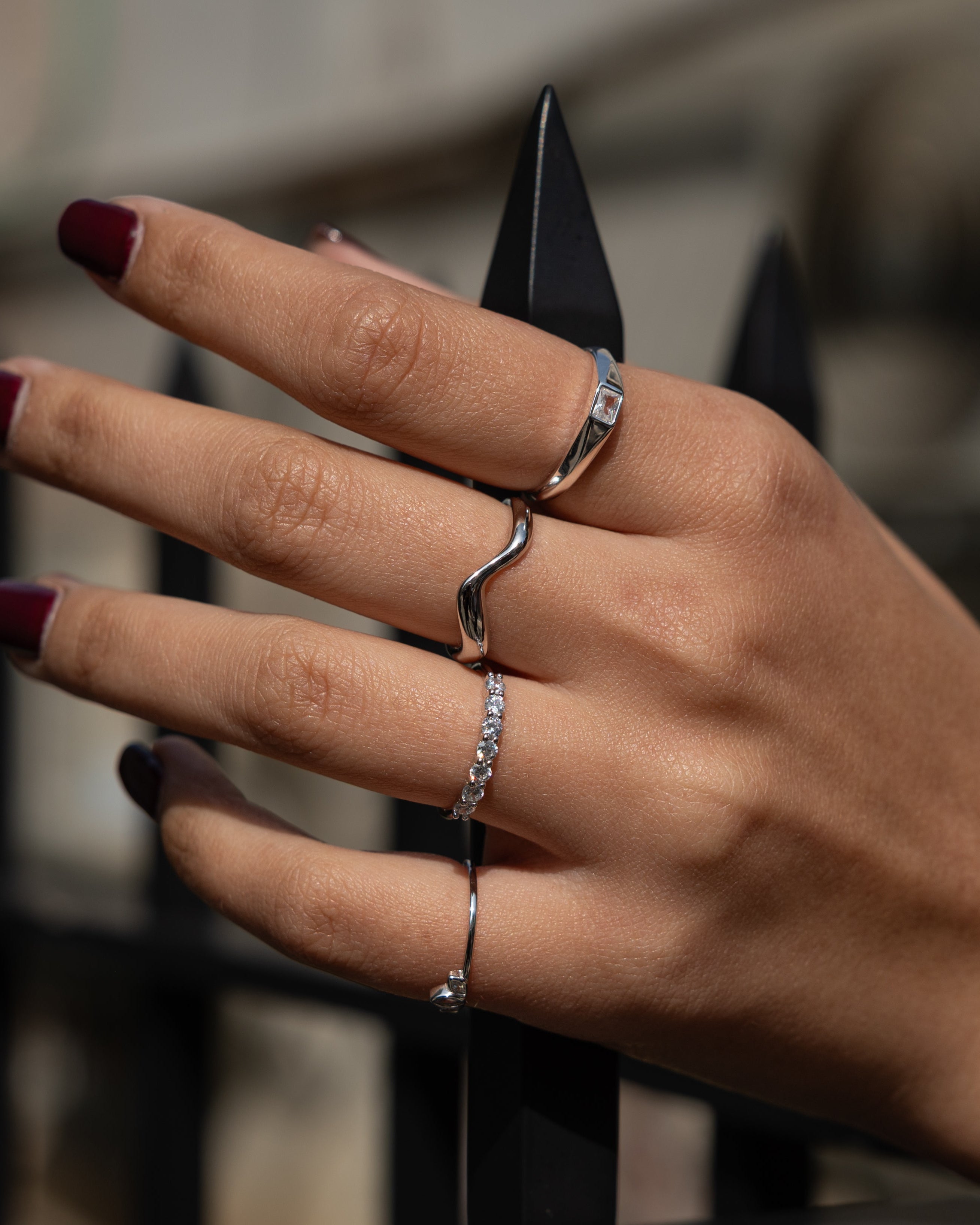 טבעת כסף או ציפוי זהב בעיצוב אסימטרי, המזכירה גל, עם עוביים משתנים המוסיפים נופך ייחודי. העיצוב הקלאסי והאלגנטי שלה מדגיש את היופי שבפשטות, והיא מתאימה לכל אישה ולכל סגנון. עם מראה קליל ומרשים, הטבעת היא תוספת מושלמת לכל אוסף תכשיטים. במחיר נגיש, היא מציעה איכות וסטייל שלא ניתן להתעלם מהם. גלי את הקסם של הטבעת שתשדרג כל הופעה!