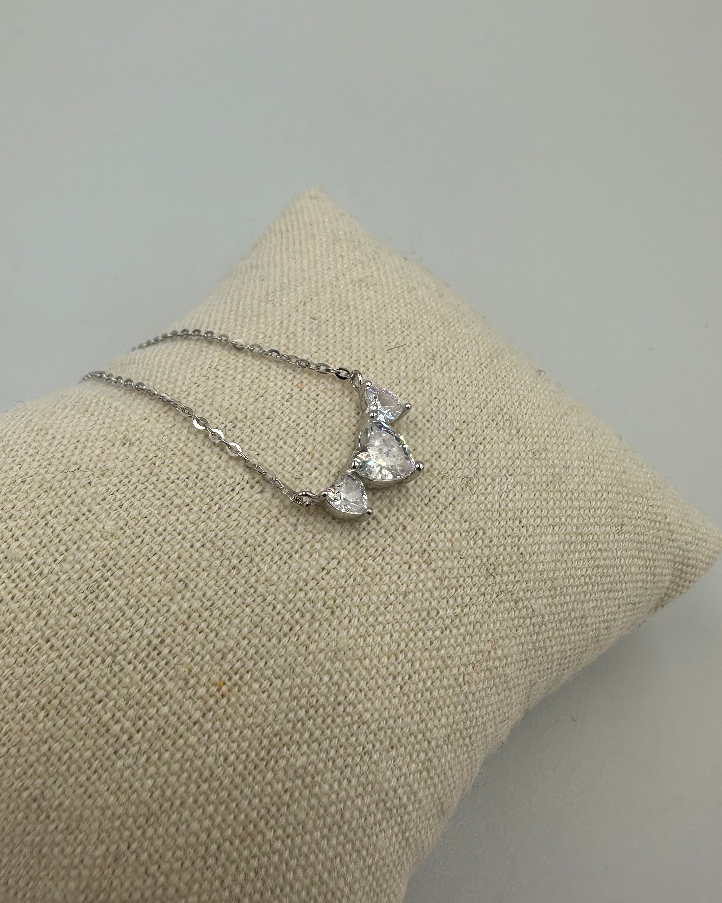 שרשרת כסף מעוצבת עם שלושה תליוני לבבות בגדלים שונים, כולם עשויים מאבני זירקון במחיר נגיש. העיצוב הייחודי מוסיף נופך יוקרתי לכל הופעה, ומשדר אלגנטיות ונעימות. היא מתאימה לכל גיל, והופכת אותה למתנה מושלמת ליקרה לך. עם שילוב של טרנדיות ופשטות, השרשרת מציעה מראה קלאסי ונוצץ. מחיר נגיש עושה אותה לאופציה נהדרת עבור כל חובבת תכשיטים
