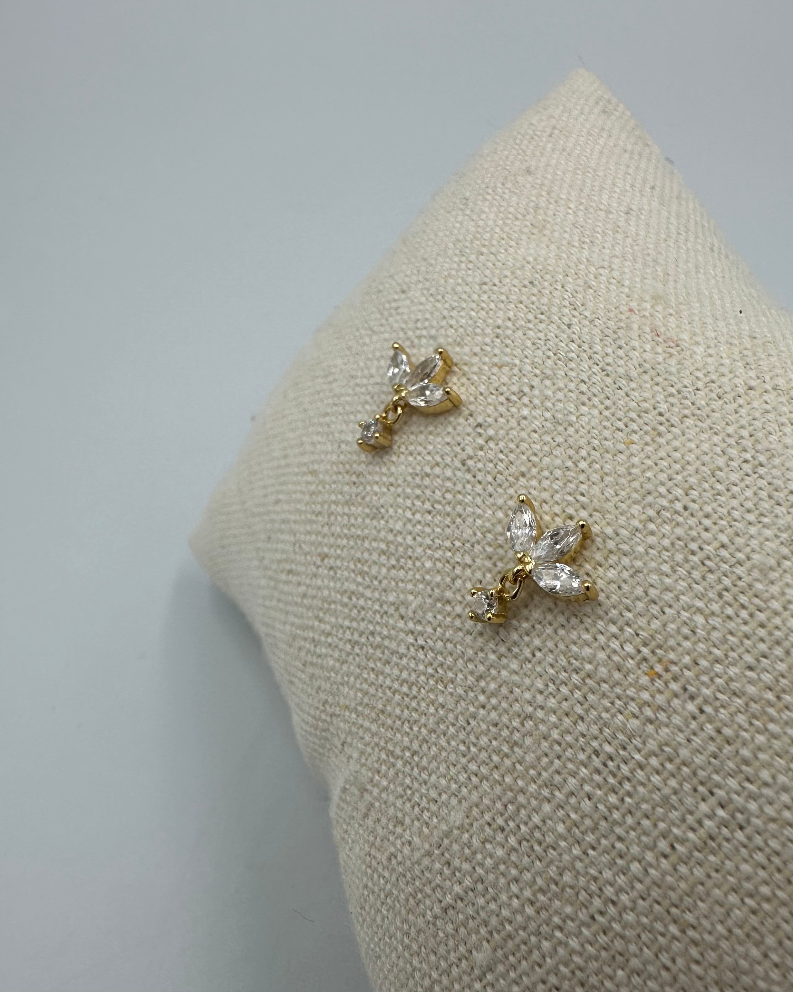 עגילי כסף או ציפוי זהב צמודים לאוזן, מעוצבים בשלוש אבני זירקון בצורת עלים, יחד עם אבן זירקון עגולה תלויה. תכשיט זה מציע מראה אלגנטי וקלאסי, מושלם להשלמת סט עגילים ייחודי. העגילים מתאימים לכל סגנון ולכל גיל, והם מושלמים למי שמחפשת להוסיף נופך מיוחד למראה שלה. מחירם נגיש, כך שכל אחת יכולה ליהנות מהם. אל תפספסי את ההזדמנות להוסיף אותם לאוסף שלך!