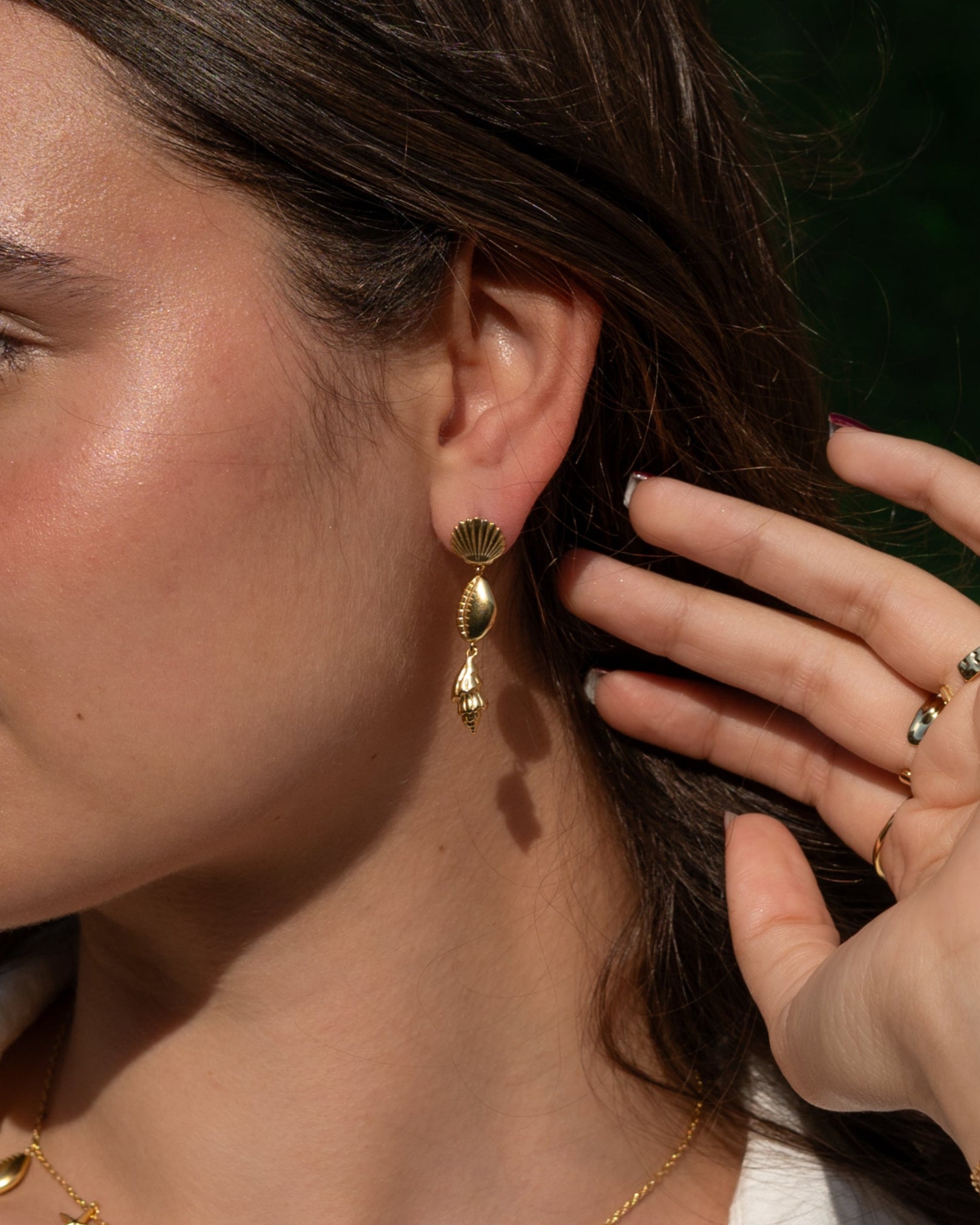 גלה את עגילי ציפוי הזהב המרהיבים שלנו, המשלבים שלושה תליוני צדף שונים ליצירת מראה ייחודי ומיוחד. עם עיצוב טרנדי שמתאים לכל אירוע, העגילים הללו מבטיחים לשדרג כל הופעה ולהוסיף נגיעת וואו. הם מושלמים לנשים שמעוניינות להבליט את הסגנון האישי שלהם. אל תפספסי את ההזדמנות להוסיף תכשיט מרהיב זה לאוסף שלך! מחיר נגיש ומראה בלתי נשכח מחכים לך.