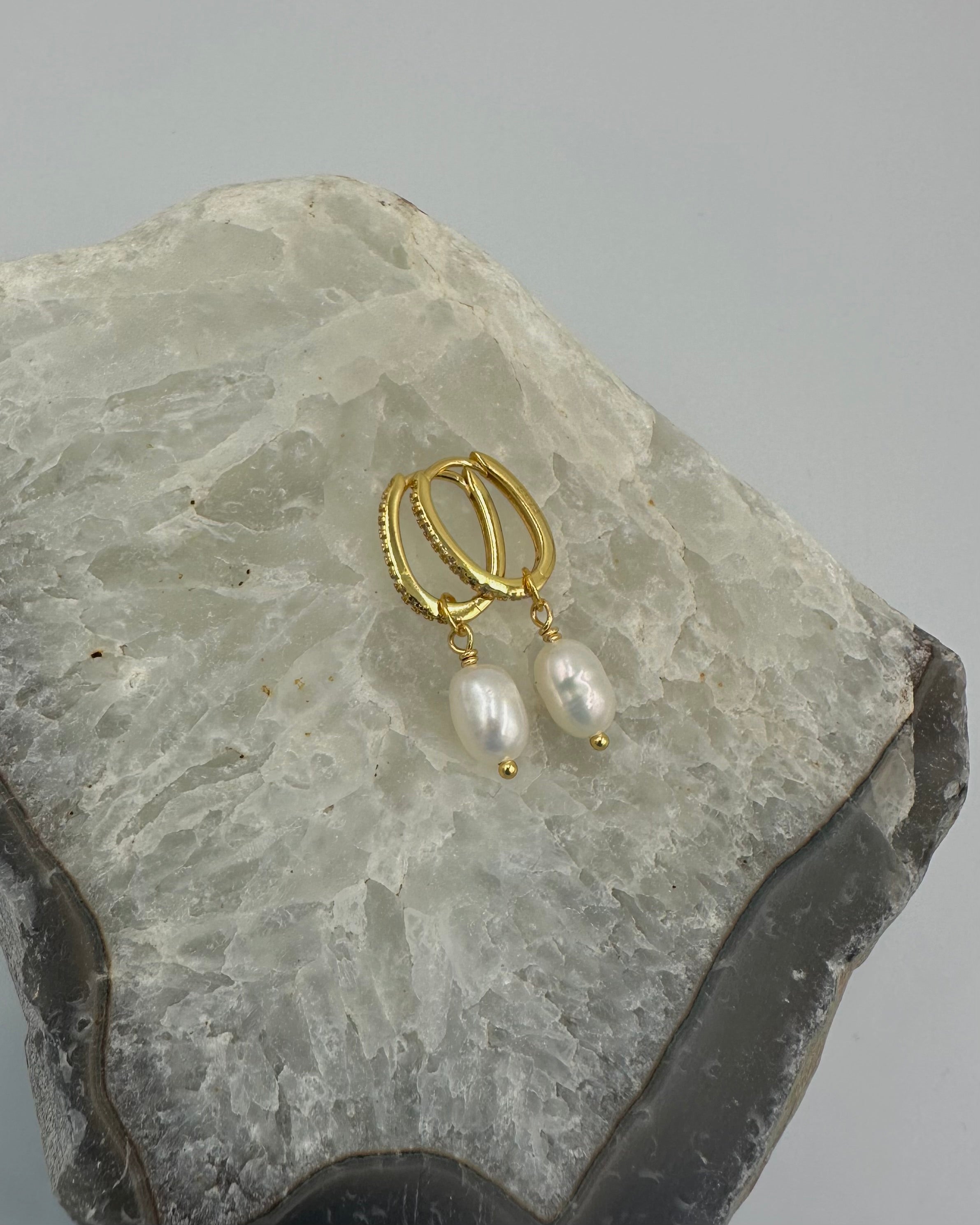 עגילי כסף או ציפוי זהב בצורת חישוק קטנים ופנינים תלויות הם תכשיט עדין ומרשים במחיר נגיש. החישוקים מעוטרים באבני זירקון מבריקות שמוסיפות נופך של זוהר, בעוד הפנינה הממכרת התלויה בהם מוסיפה רכות ואלגנטיות. העיצוב הקלאסי שלהם מאפשר לשלב אותם בקלות עם מגוון סגנונות לבוש, מה שהופך אותם למושלמים ליום-יום ולערבים מיוחדים. תכשיט זה מבטא סגנון אישי ומוקפד, ויוסיף קסם לכל הופעה. הבחירה האידיאלית למי שמעריכה יופי ופשטות!